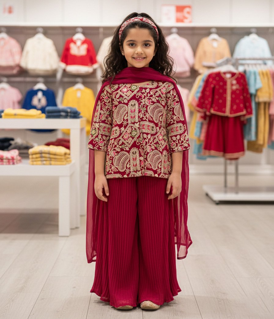 This Palazzo Suit is designed for comfort and style, featuring a graceful kurta paired with flowy palazzo pants. Made from soft, breathable fabric, it offers a relaxed fit with an elegant look. Perfect for festive occasions, casual outings, and special events.