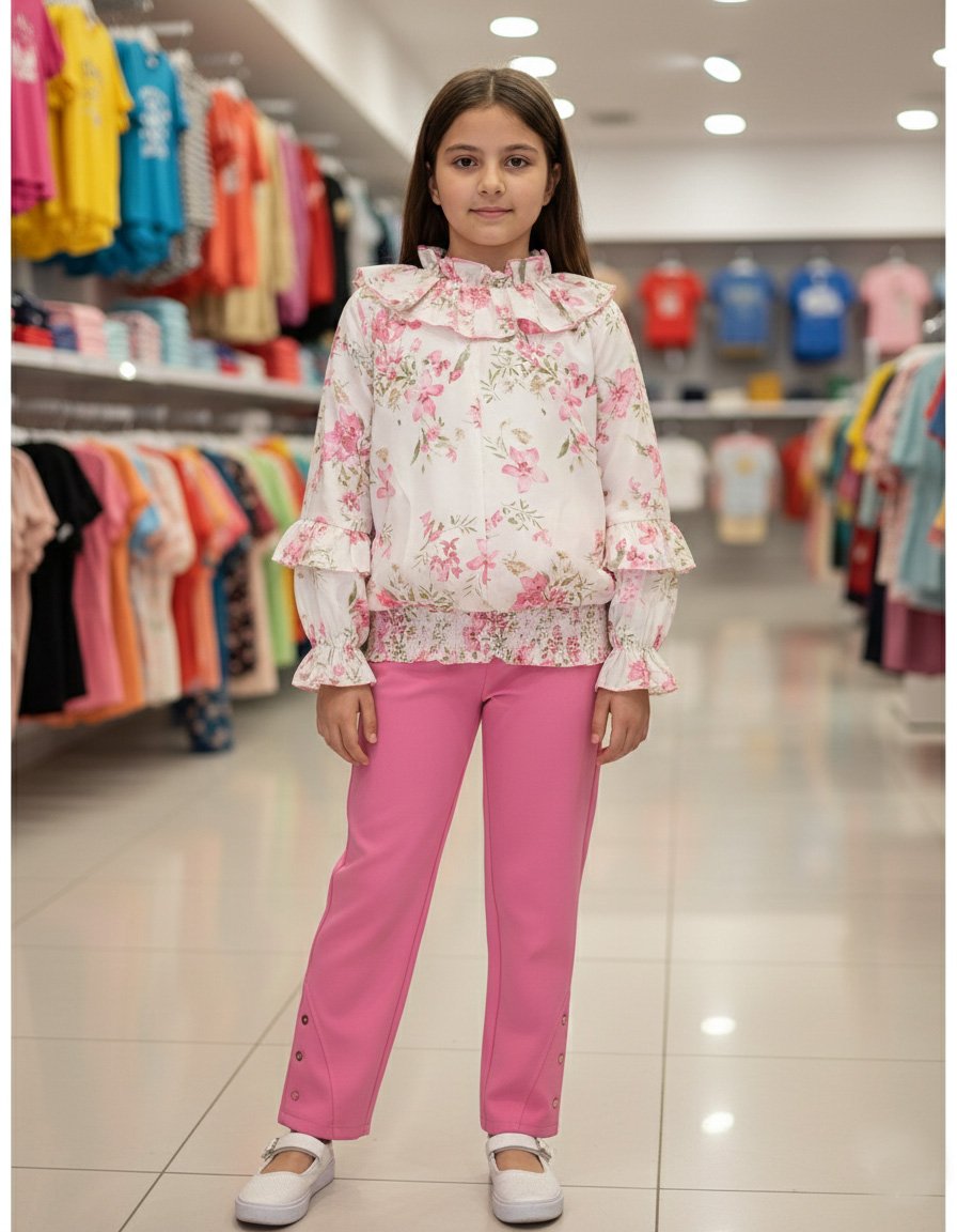 This stylish printed top and pants set is designed to offer a fun and comfortable look. The top features attractive prints that add a playful charm, while the matching pants ensure a relaxed and easy fit. Made from soft, breathable, and skin-friendly fabric, this set allows free movement and all-day comfort. Ideal for daily wear, outings, and casual occasions, it combines trendy design with practical comfort.